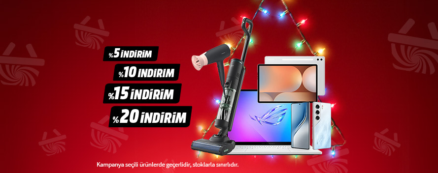 Kampanya 13.12.2025 08:00-15.12.2025 07:30 tarihleri arasında mediamarkt.com.tr’den ve mobil uygulamadan yapılacak alışverişlerde geçerlidir. Kampanyaya dahil ürünler ile sepet tutarı 2.000 TL ve üzeri olduğunda kampanyaya dahil her ürün için sepette indirim oranı değişkenlik göstermektedir. Başka sepet kampanyaları, indirim kodları ve kampanyalarla birleştirilemez. MediaMarkt; kampanyalar sırasında oluşabilecek öngörülemeyen değişiklikler nedeniyle ürün, fiyat değişimi yapma ve kampanyayı sona erdirme hakkını saklı tutar. Tipografik hatalardan ve yazım hatalarından MediaMarkt sorumlu değildir. MediaMarkt tarafından düzenlenen tüm kampanyalar tüketicilere yöneliktir. Her bir kullanıcı yanlınızca bir (1) defa bu kampanyadan yararlanabilir. Kampanyalardan ticari gaye ile yararlanıldığı ve ticari alımların tespiti halinde kampanya kapsamındaki sipariş iptal edilebilir. Kampanya stoklarla sınırlıdır. Kampanyadan kurumsal müşteriler yararlanamayacaktır.