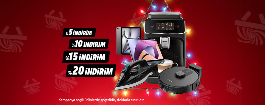 Kampanya 16.12.2025 08:00-18.12.2025 07:30 tarihleri arasında mediamarkt.com.tr’den ve mobil uygulamadan yapılacak alışverişlerde geçerlidir. Kampanyaya dahil ürünler ile sepet tutarı 2.000 TL ve üzeri olduğunda kampanyaya dahil her ürün için sepette indirim oranı değişkenlik göstermektedir. Başka sepet kampanyaları, indirim kodları ve kampanyalarla birleştirilemez. MediaMarkt; kampanyalar sırasında oluşabilecek öngörülemeyen değişiklikler nedeniyle ürün, fiyat değişimi yapma ve kampanyayı sona erdirme hakkını saklı tutar. Tipografik hatalardan ve yazım hatalarından MediaMarkt sorumlu değildir. MediaMarkt tarafından düzenlenen tüm kampanyalar tüketicilere yöneliktir. Her bir kullanıcı yanlınızca bir (1) defa bu kampanyadan yararlanabilir. Kampanyalardan ticari gaye ile yararlanıldığı ve ticari alımların tespiti halinde kampanya kapsamındaki sipariş iptal edilebilir. Kampanya stoklarla sınırlıdır. Kampanyadan kurumsal müşteriler yararlanamayacaktır.