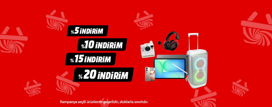 Kampanya 18.10.2025 08:00-21.10.2025 7:30 tarihleri arasında sadece uygulamadan satın alınacak seçili ürünlerde geçerlidir. Kampanyaya dahil ürünler için app özel sepette indirim oranı değişkenlik göstermektedir. Başka sepet kampanyaları, indirim kodları ve kampanyalarla birleştirilemez. MediaMarkt; kampanyalar sırasında oluşabilecek öngörülemeyen değişiklikler nedeniyle ürün, fiyat değişimi yapma ve kampanyayı sona erdirme hakkını saklı tutar. Tipografik hatalardan ve yazım hatalarından MediaMarkt sorumlu değildir. MediaMarkt tarafından düzenlenen tüm kampanyalar tüketicilere yöneliktir. Kampanyalardan ticari gaye ile yararlanıldığı ve ticari alımların tespiti halinde kampanya kapsamındaki sipariş iptal edilebilir.