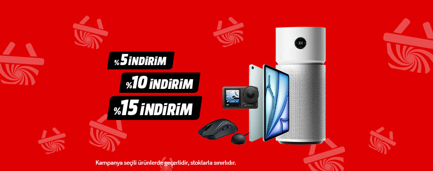 Kampanya 21.02.2026 08:00-23.02.2026 07:30 tarihleri arasında mediamarkt.com.tr’den ve mobil uygulamadan yapılacak alışverişlerde geçerlidir. Kampanyaya dahil ürünler ile sepet tutarı 2.000 TL ve üzeri olduğunda kampanyaya dahil her ürün için sepette indirim oranı değişkenlik göstermektedir. Başka sepet kampanyaları, indirim kodları ve kampanyalarla birleştirilemez. MediaMarkt; kampanyalar sırasında oluşabilecek öngörülemeyen değişiklikler nedeniyle ürün, fiyat değişimi yapma ve kampanyayı sona erdirme hakkını saklı tutar. Tipografik hatalardan ve yazım hatalarından MediaMarkt sorumlu değildir. MediaMarkt tarafından düzenlenen tüm kampanyalar tüketicilere yöneliktir. Her bir kullanıcı yanlınızca bir (1) defa bu kampanyadan yararlanabilir. Kampanyalardan ticari gaye ile yararlanıldığı ve ticari alımların tespiti halinde kampanya kapsamındaki sipariş iptal edilebilir. Kampanya stoklarla sınırlıdır. Kampanyadan kurumsal müşteriler yararlanamayacaktır.