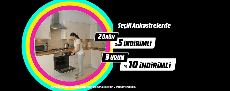 Kampanya 4.11.2025– 1.12.2025 07:30 tarihleri arasında seçili Ankastre ürünlerinde 2 ürün alımında %5, 3 ürün alımında ise %10 indirim olacaktır. Sepet aşamasında seçili ankastre ürünlerini eklemelidir. Kampanya seçili ürünlerde geçerlidir. Kampanya mediamarkt.com.tr’de, mobil uygulamasında ve MediaMarkt mağazalarında geçerlidir. MediaMarkt; kampanyalar sırasında oluşabilecek öngörülemeyen değişiklikler nedeniyle ürün, fiyat değişimi yapma ve kampanyayı sona erdirme hakkını saklı tutar. İş bu kampanya süresince, kampanya kapsamındaki indirim haklarının tamamından 1 (bir) defa faydalanılabilir. İndirim tutarı nakit veya hediye kartı olarak talep edilemez. Bu kampanya kapsamında verilen indirim ile CLUB avantajları ve MediaMarkt Türkiye tarafından verilen diğer kampanyalar birleştirilemez. MediaMarkt kampanya koşullarını değiştirme hakkını saklı tutmaktadır. Tipografik hatalardan ve yazım hatalarından MediaMarkt sorumlu değildir. MediaMarkt tarafından düzenlenen tüm kampanyalar tüketicilere yöneliktir. Kampanyalardan ticari gaye ile yararlanıldığı ve ticari alımların tespiti halinde kampanya kapsamındaki sipariş iptal edilebilir..