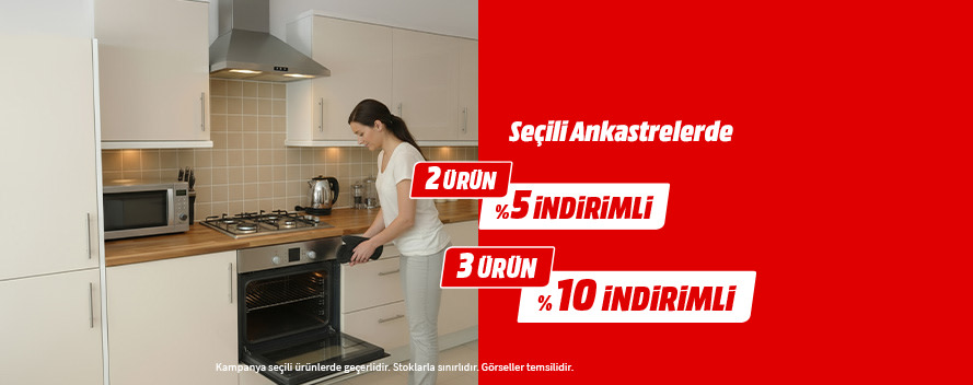 Kampanya 6.2.2026– 1.3.2026 07:30 tarihleri arasında seçili Ankastre ürünlerinde 2 ürün alımında %5, 3 ürün alımında ise %10 indirim olacaktır. Sepet aşamasında seçili ankastre ürünlerini eklemelidir. Kampanya seçili ürünlerde geçerlidir. Kampanya mediamarkt.com.tr’de, mobil uygulamasında ve MediaMarkt mağazalarında geçerlidir. MediaMarkt; kampanyalar sırasında oluşabilecek öngörülemeyen değişiklikler nedeniyle ürün, fiyat değişimi yapma ve kampanyayı sona erdirme hakkını saklı tutar. İş bu kampanya süresince, kampanya kapsamındaki indirim haklarının tamamından 1 (bir) defa faydalanılabilir. İndirim tutarı nakit veya hediye kartı olarak talep edilemez. Bu kampanya kapsamında verilen indirim ile CLUB avantajları ve MediaMarkt Türkiye tarafından verilen diğer kampanyalar birleştirilemez. MediaMarkt kampanya koşullarını değiştirme hakkını saklı tutmaktadır. Tipografik hatalardan ve yazım hatalarından MediaMarkt sorumlu değildir. MediaMarkt tarafından düzenlenen tüm kampanyalar tüketicilere yöneliktir. Kampanyalardan ticari gaye ile yararlanıldığı ve ticari alımların tespiti halinde kampanya kapsamındaki sipariş iptal edilebilir.