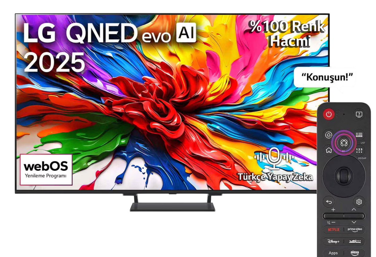 LG 65QNED93A6A 65 inç 165 Ekran Uydu Alıcılı 4K Smart AI Sihirli Kumanda webOS25 evo MiniLED QNED TV