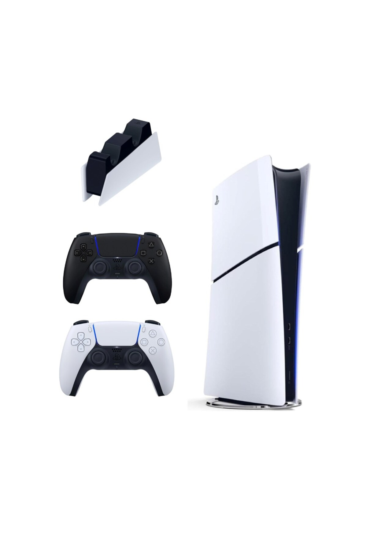 SONY Şarj İstasyonu + 2 Siyah Dualsense + Playstation 5 Slim Digital 825 GB (İthalatçı Garantili) Oyun Konsolu Beyaz