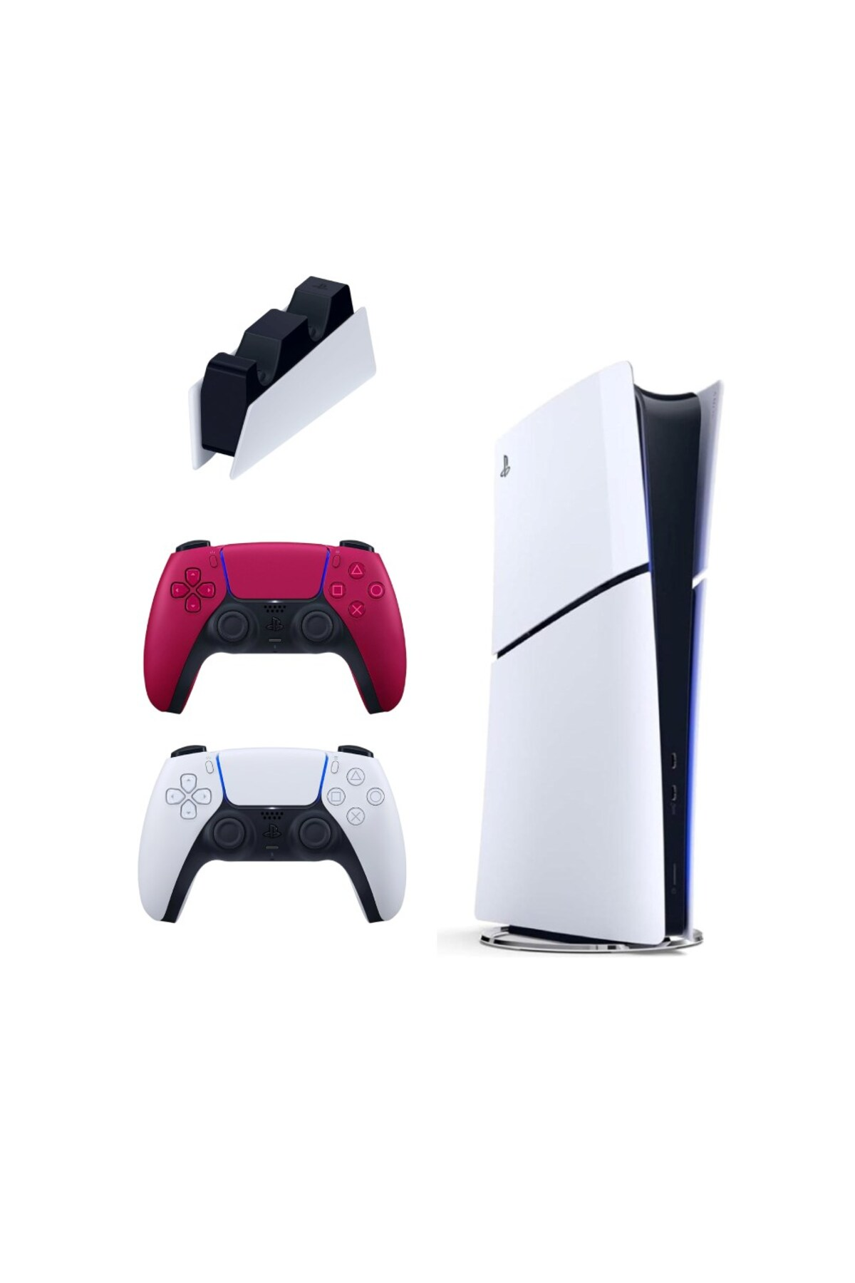 SONY Şarj İstasyonu + 2 Kırmızı Dualsense + Playstation 5 Slim Digital 825 GB (İthalatçı Garantili) Oyun Konsolu Beyaz