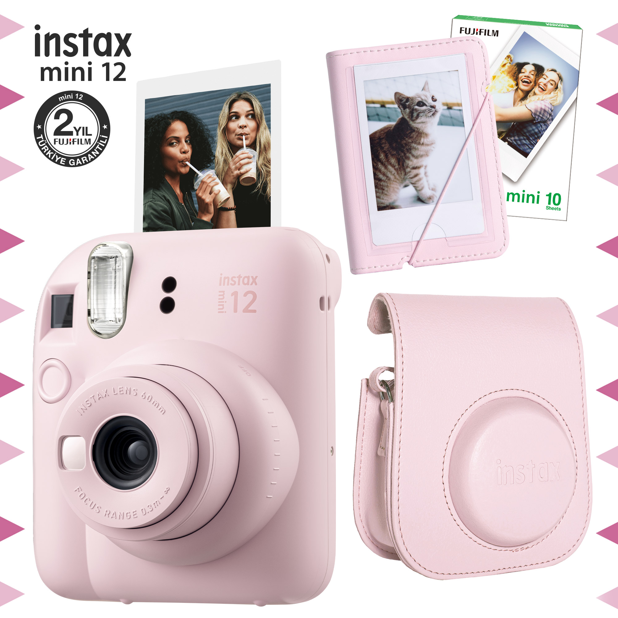 mini 12 fotoğraf makinesi, mini 10’lu film, 64’lü PVC fotoğraf albümü, fotoğraf kıskacı, mini 12 simli pleksi kılıf