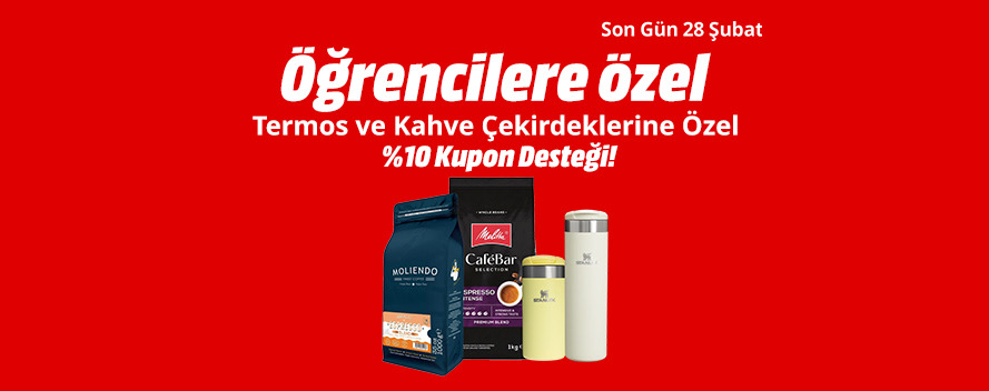 Kampanya, 18–28 Şubat tarihleri arasında MediaMarkt mağazalarından, web sitesinden adresinden ve MediaMarkt mobil uygulamasından, öğrenciler tarafından yapılacak alışverişlerde geçerlidir. Kampanya kapsamında öğrenciler tarafından yapılacak seçili kahve çekirdekleri ve termos alışverişlerinde geçerli %10 kupon desteği uygulanacaktır. Kampanyadan yararlanılabilmesi için Bi'öğrenci'de öğrenciliğin doğrulanması ve buradan temin edilen kupon kodunun alışveriş esnasında kullanılması gerekmektedir. İş bu kampanya süresince, her bir müşteri kampanyadan bir (1) defa yararlanabilir. Koddan yararlanabilmek için MediaMarkt CLUB üyeliği zorunludur. Kampanya, tüm üniversite öğrencileri ile 16-17 yaş grubu arasındaki lise öğrencileri için geçerlidir. Bu kampanya kapsamında sağlanan avantajlar Media Markt Turkey tarafından yapılan diğer kampanyalarla birleştirilemez, kazanılan kupon üçüncü kişilere devredilemez. Media Markt kampanya koşullarını değiştirme hakkını saklı tutmaktadır. Kampanya MediaMarkt tarafından satılan ürünlerde geçerli olup pazaryeri satıcılarından yapılacak alımlarda geçerli değildir. MediaMarkt kampanya koşullarını değiştirme hakkını saklı tutar.